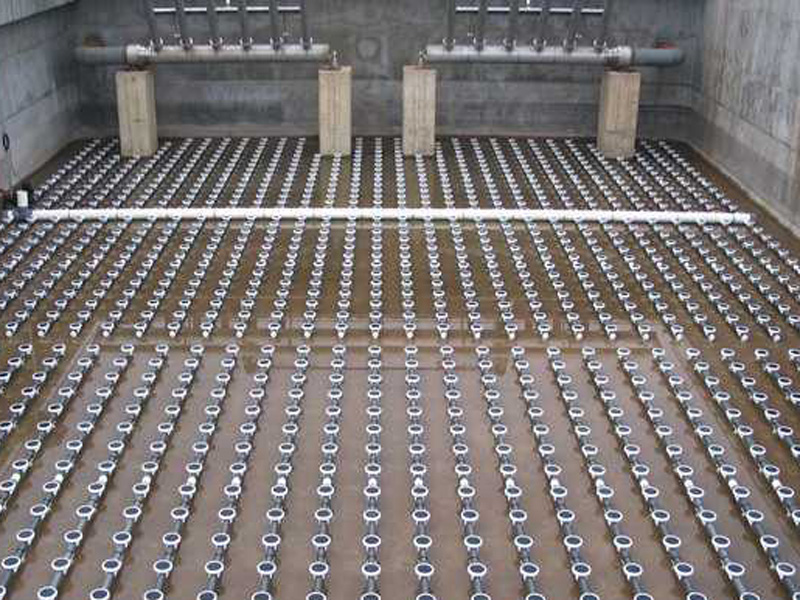 膜片式微孔曝氣器80年代研制的最新型曝氣裝置,該裝置曝氣氣泡直徑小,氣液界面直徑小,氣液界面積大,氣泡擴(kuò)散均勻,不會(huì)產(chǎn)生孔眼堵塞,耐腐蝕性強(qiáng),經(jīng)上海同濟(jì)大學(xué)環(huán)境工程學(xué)院和中國(guó)市政工程華北設(shè)計(jì)院進(jìn)行清水和污水充氧測(cè)試,并經(jīng)50多家用戶多年使用效果良好(比常規(guī)產(chǎn)品固定旋混式曝氣器,散流式曝氣器曝氣軟管能耗降低40%,或增加污水處理量40%)。特別適用于城市污水和大型工廠新建擴(kuò)建和老曝氣池改造,且曝氣池可間歇運(yùn)行。