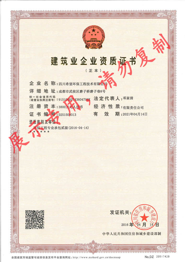 環(huán)保工程專業(yè)承包貳級(jí)