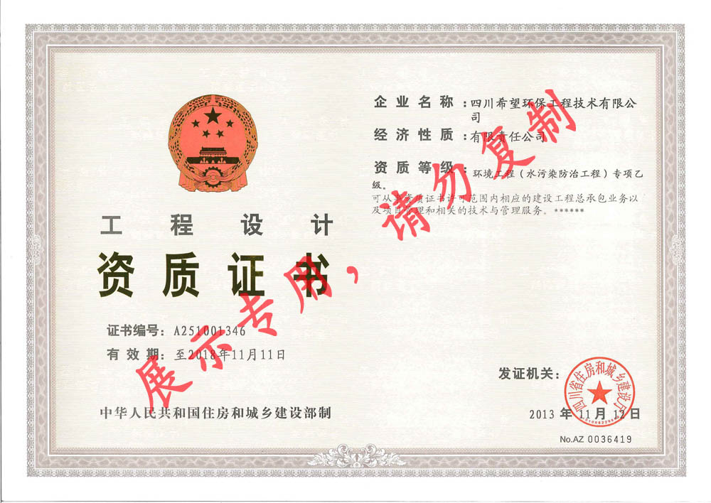 環(huán)境工程(水污染防治工程)專項(xiàng)乙級(jí)